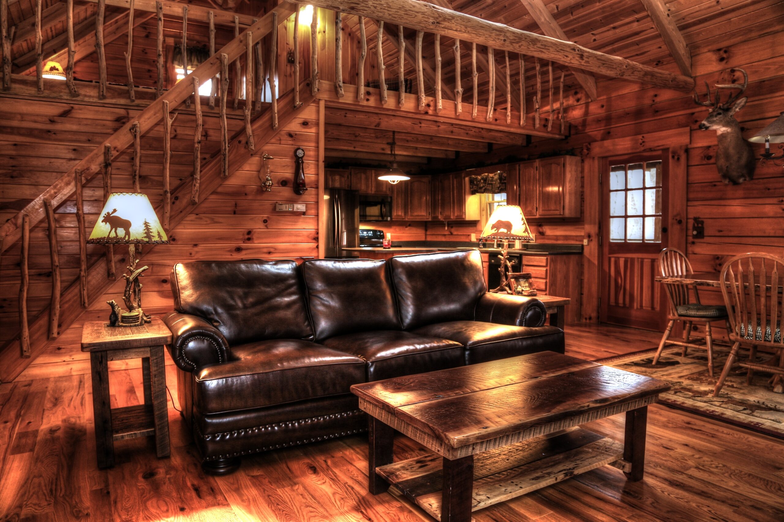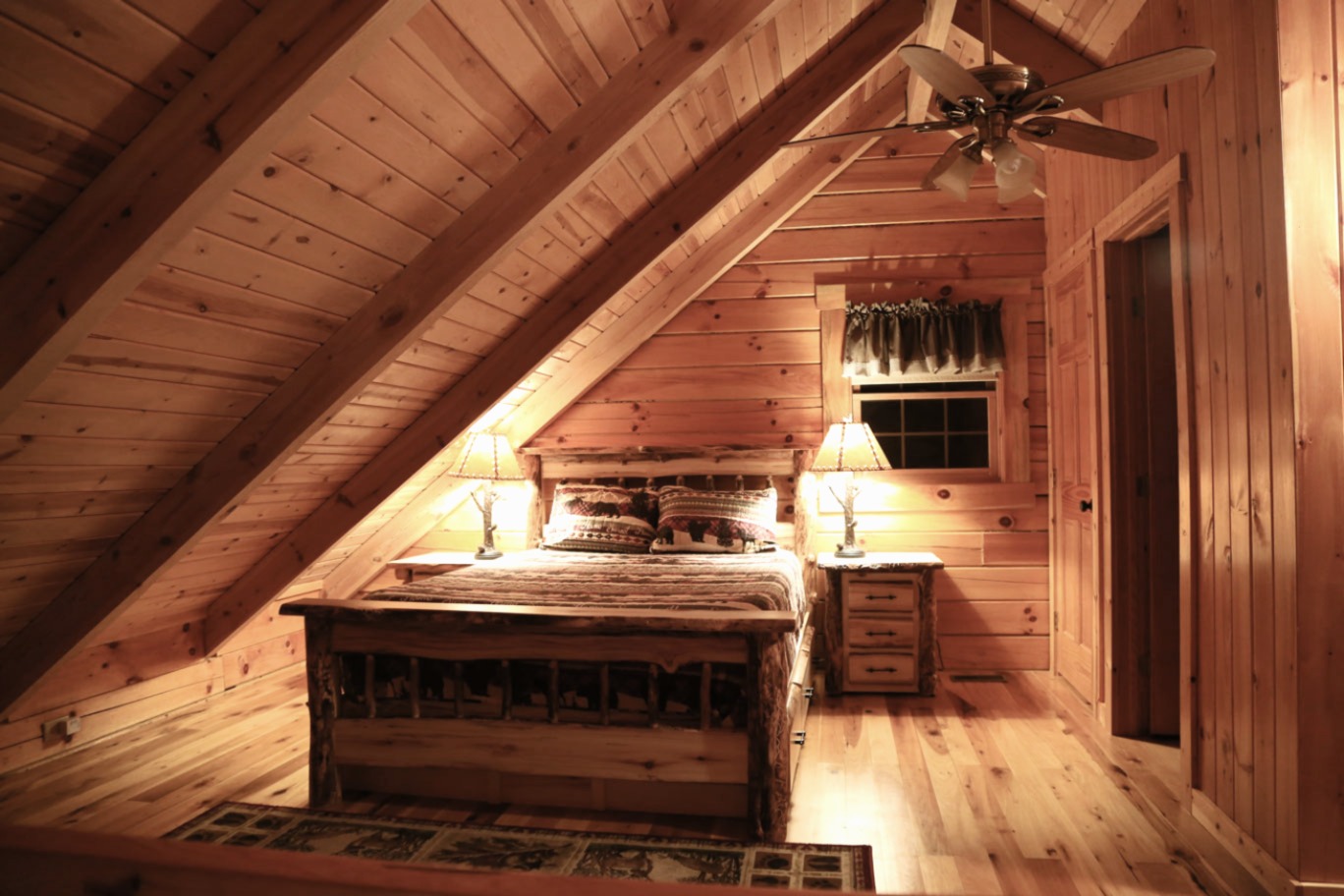 The cabin features wood burning fireplace that was built with locally sourced river rock. Premium firewood is available onsite for $10 per bundle.